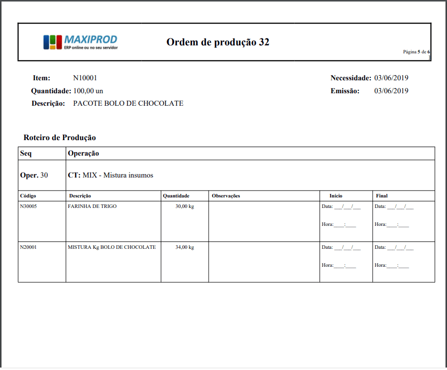 - Disponibilizado na tela de Ordens de produção, novo relatório nomeado “Ordem de produção com separação de insumos por CT”, para a visualização dos insumos da ordem de produção por centro de trabalho. Para saber mais sobre relatórios personalizados, clique aqui.