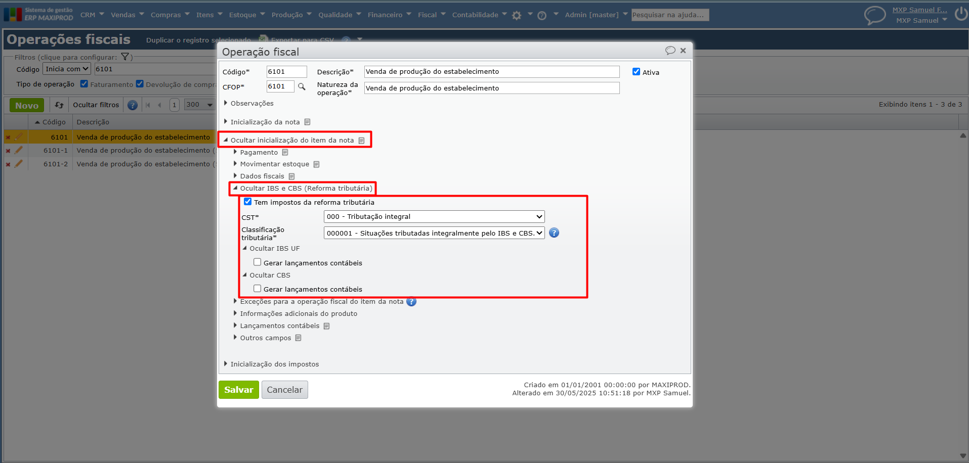 • Disponibilizado nas operações fiscais e na edição dos itens das notas fiscais os novos impostos da reforma tributária: IBS UF e CBS. Para saber mais, clique aqui.