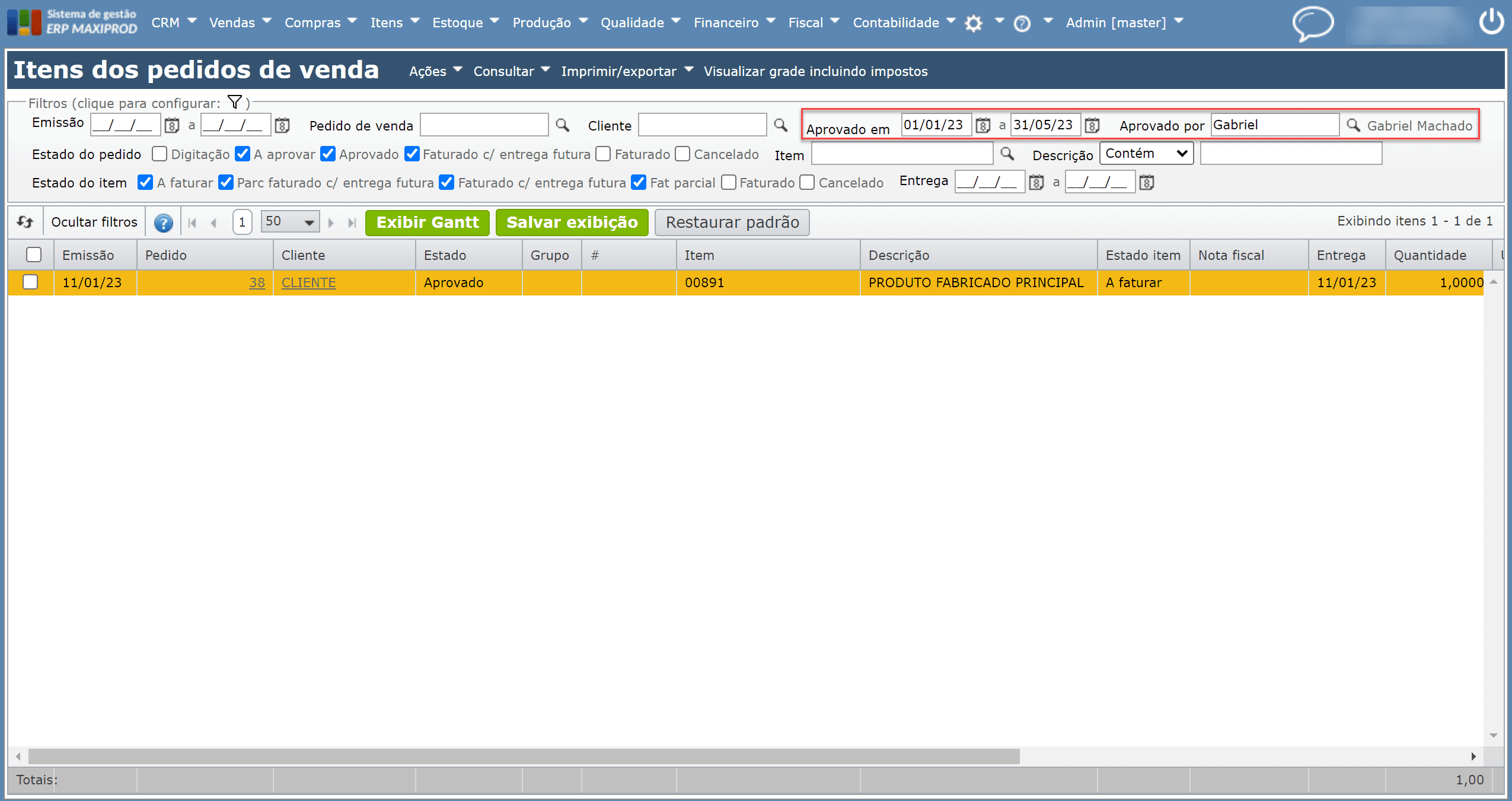 - Disponibilizado filtros para os dados “Aprovado em” e “Aprovado por” do pedido nas telas de itens dos pedidos de venda e itens dos pedidos de compra.