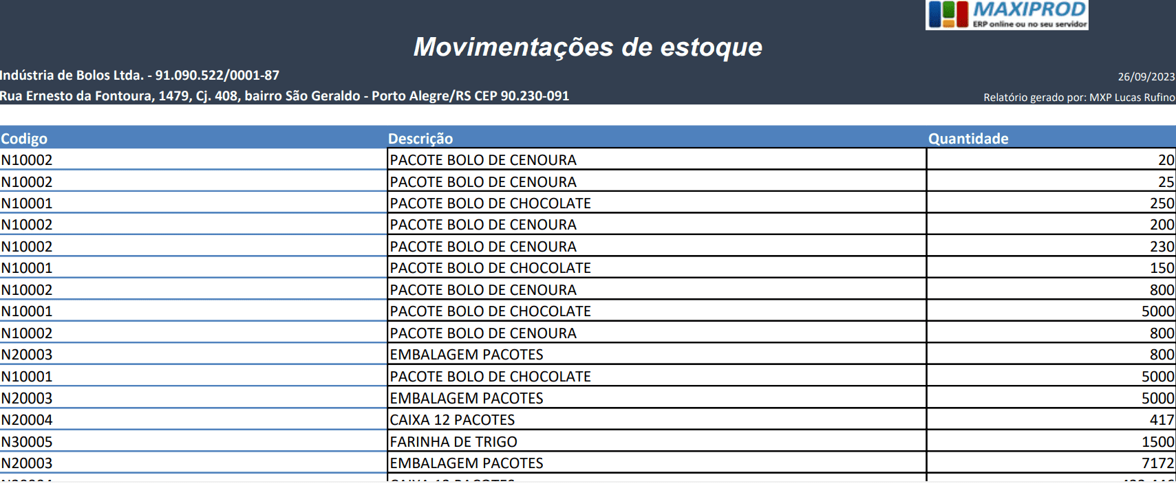 - Disponibilizado na tela de movimentações, um novo relatório nomeado “Movimentações de estoque.xlsx”, para listar o código e descrição do item, além da quantidade da movimentação. Para saber mais sobre relatórios personalizados, clique aqui.