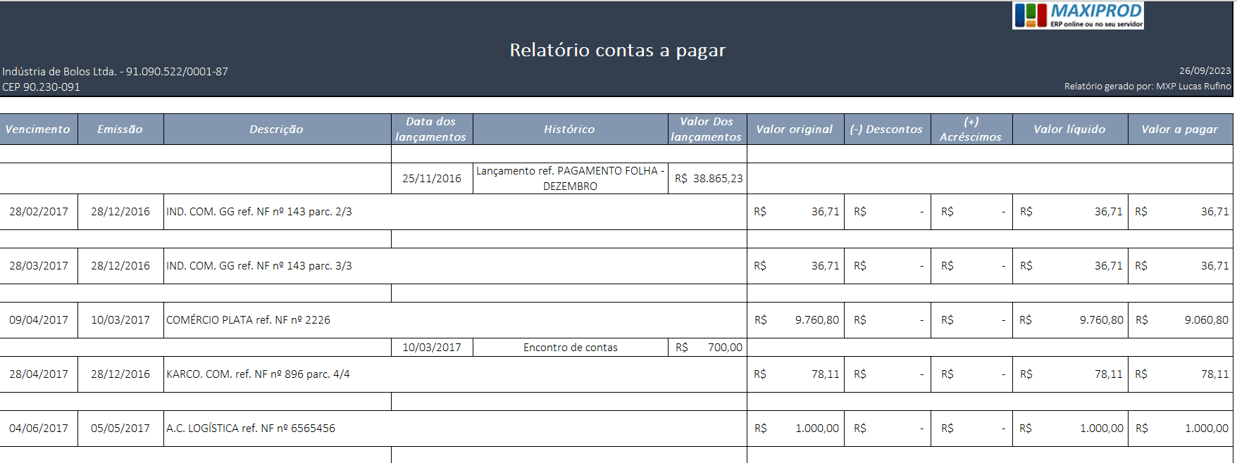 - Criado novo relatório de contas a pagar com histórico na tela de contas a pagar. Para saber mais sobre relatórios personalizados, clique aqui.