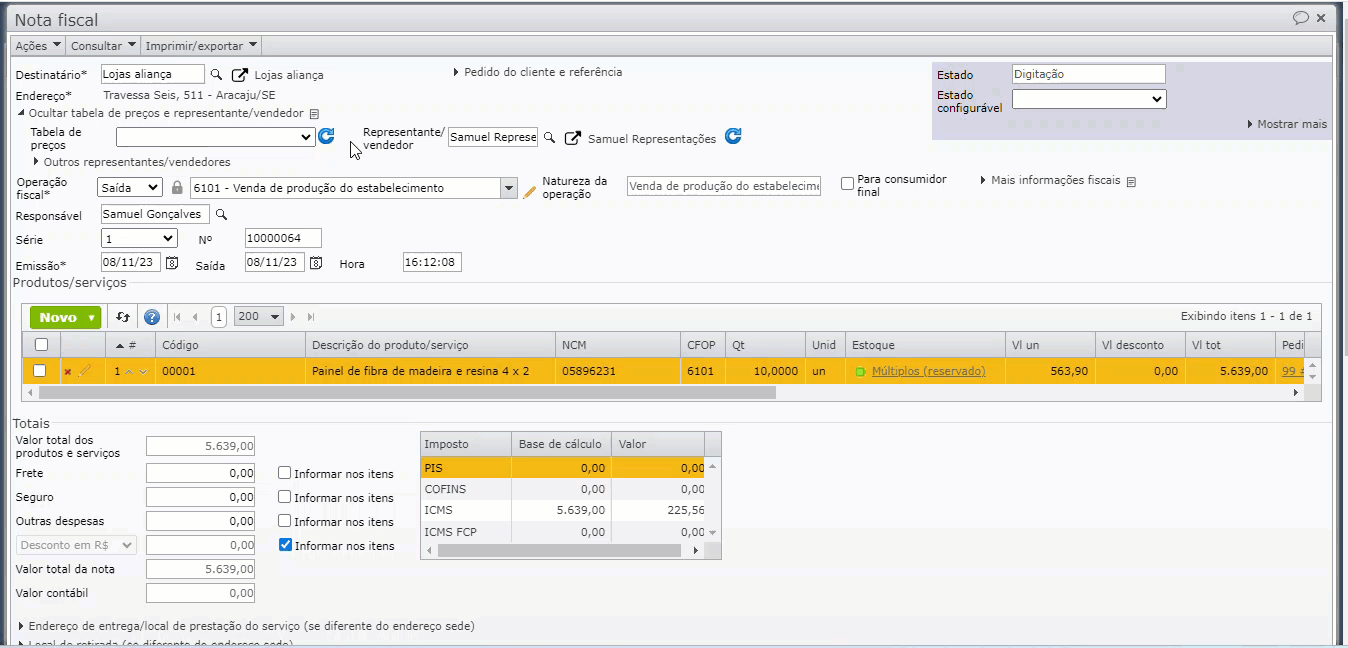 4) Após o pedido de venda ter sido “Aprovado”, retorne na edição da nota fiscal e prossiga com a emissão da nota.