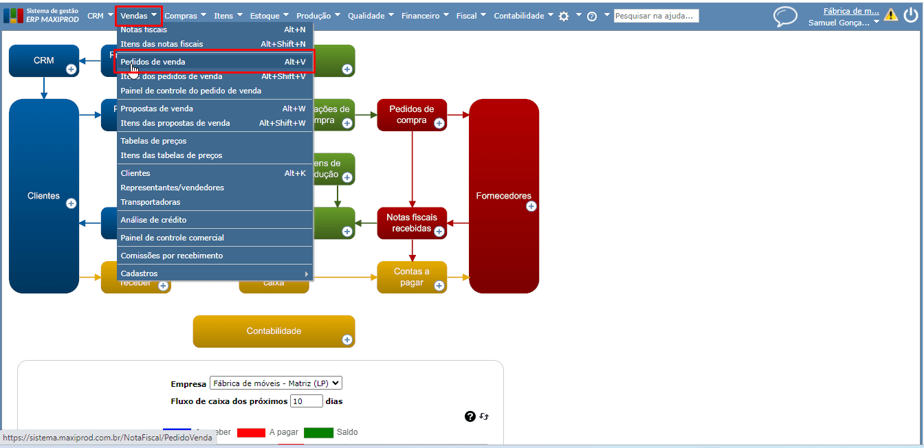 1) Para resolver, acesse o menu superior “Vendas” > opção “Pedidos de venda” ou utilize o atalho (Alt + V).