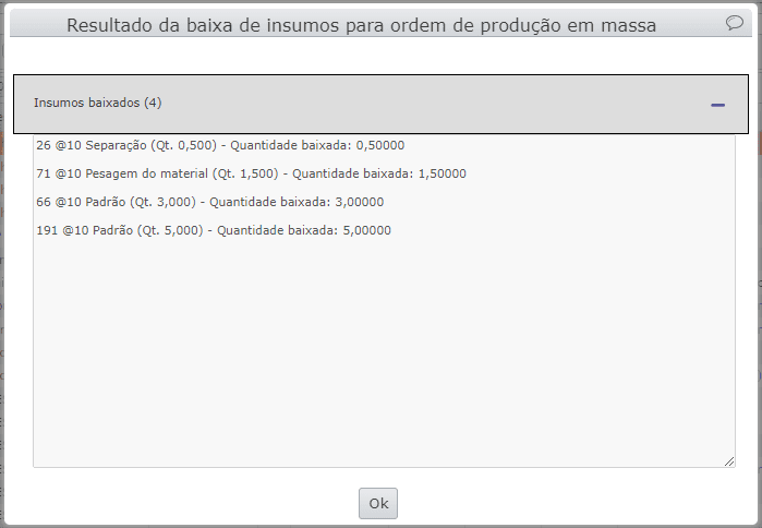7) Uma vez concluídas as baixas, é exibido um aviso com os resultados: