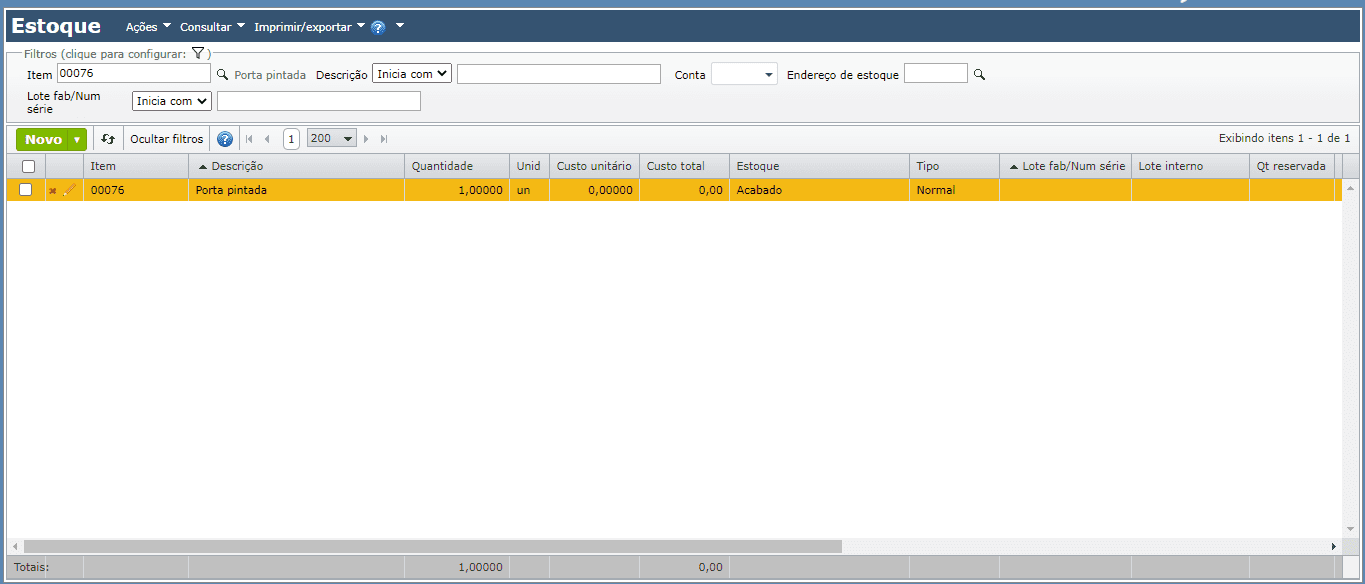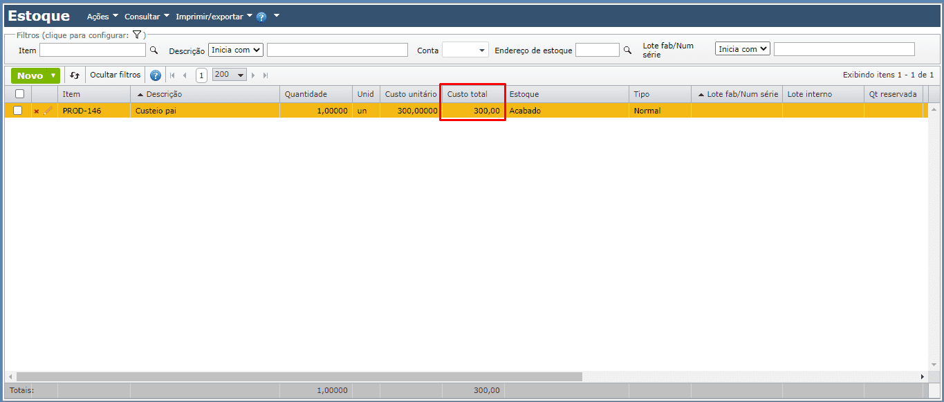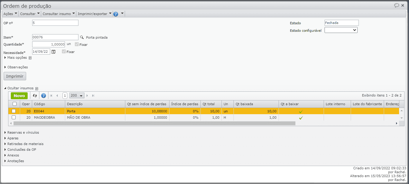 1. Concluindo a produção de um item, este entrará em estoque apenas com o custo dos insumos baixados, sem o custo da mão de obra. Por exemplo: os insumos da imagem abaixo tem custo zero,  portanto ao concluir a OP o produto entrou em estoque com valor zero: