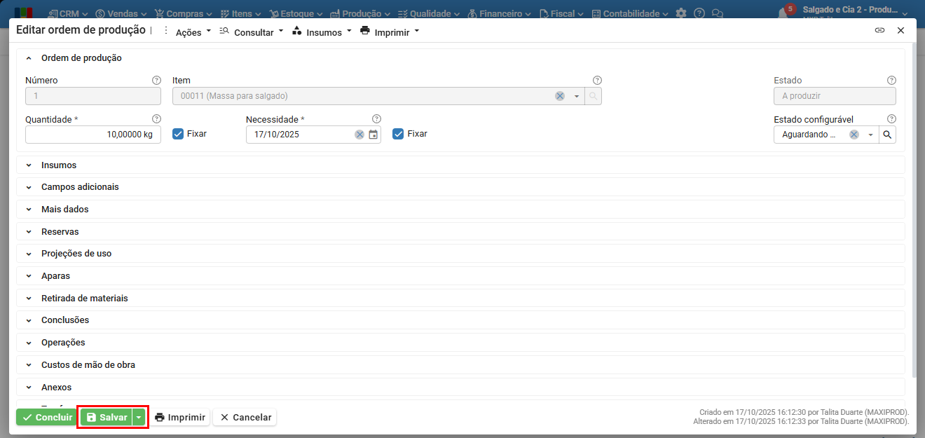 4) Clique no botão verde “Salvar” para registrar as alterações.