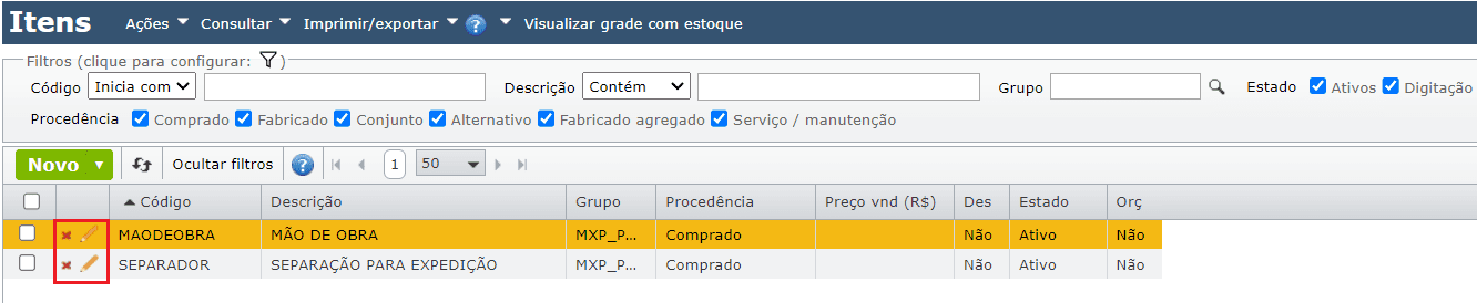 3) Abra a edição do item que deseja alterar, pelo ícone do lápis.