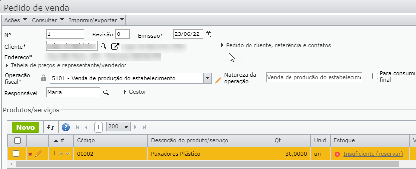Este item está no pedido de venda nº 1 da empresa “B” :