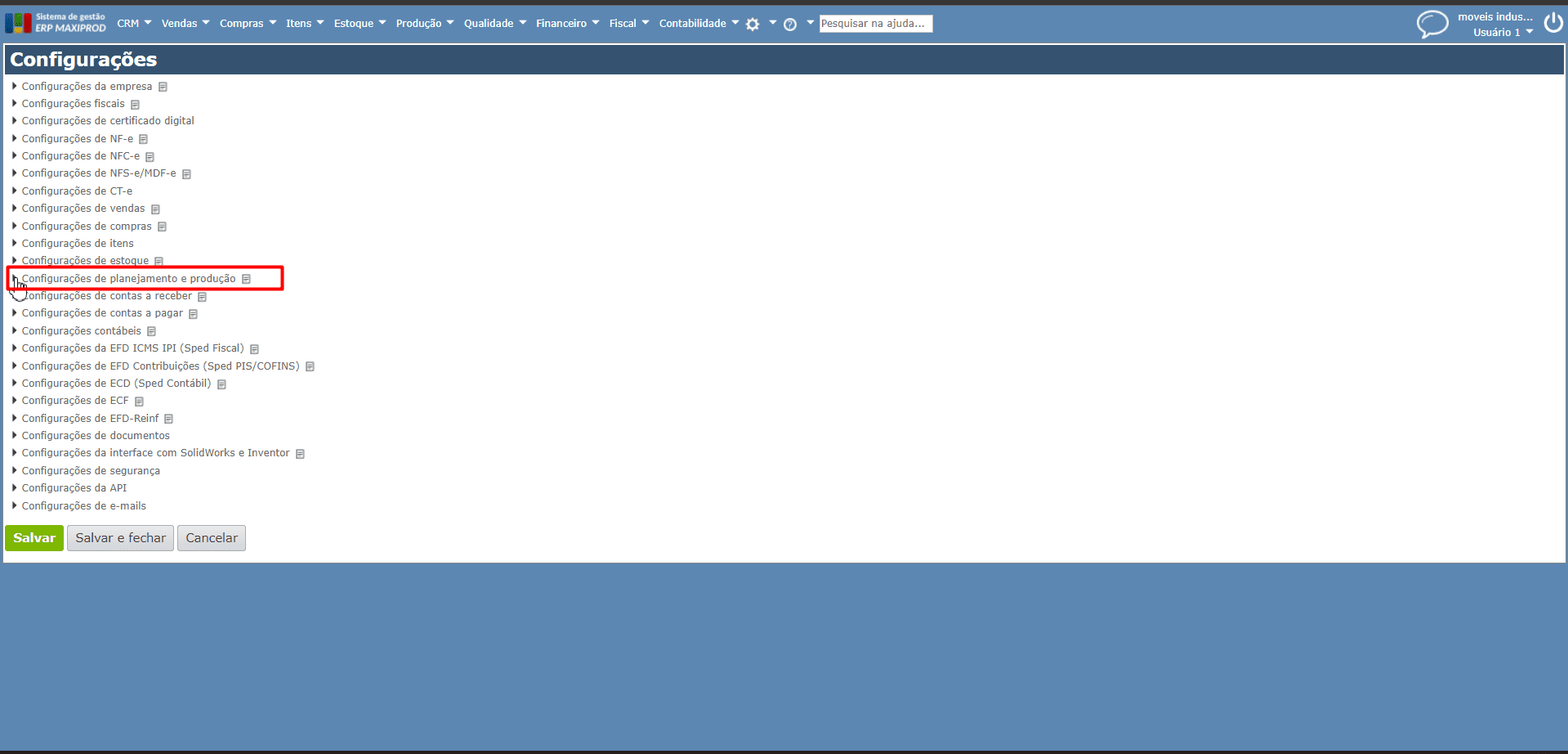 2) A seguir, exiba a seção “Configurações de planejamento e produção“.