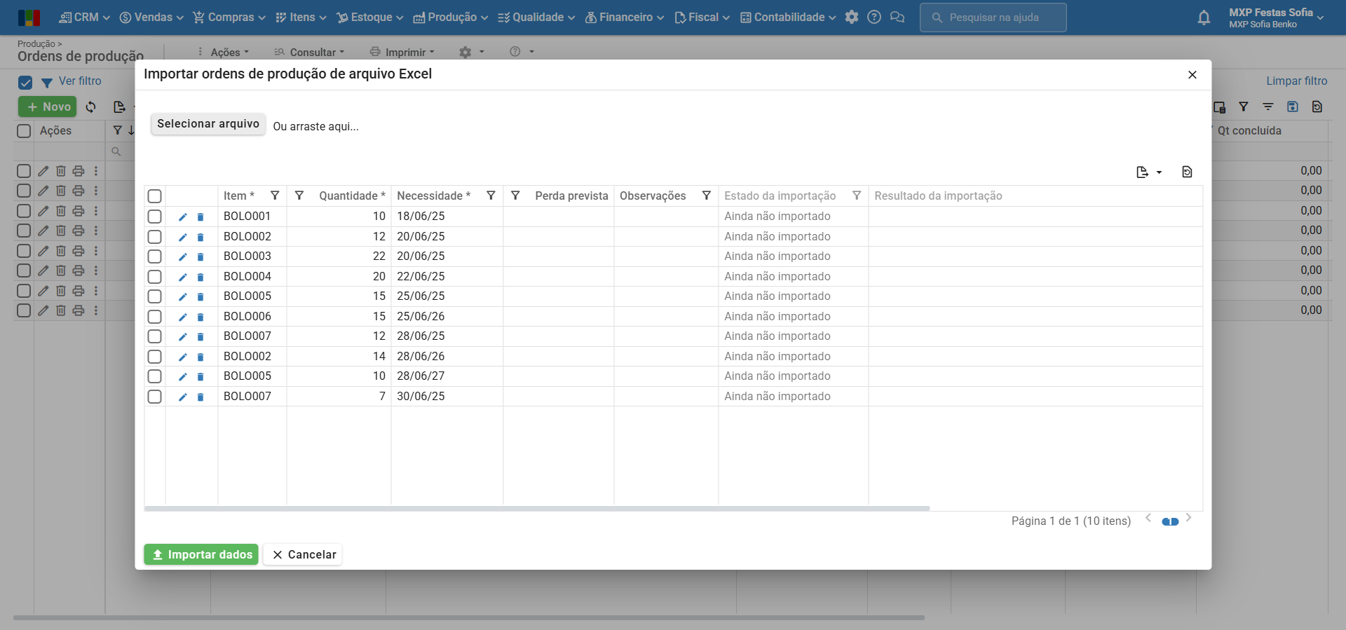 Resposta: o processo permanece o mesmo, é possível criar OPs manualmente, por importação de arquivo Excel ou via MRP. Uma novidade é a possibilidade de editar na janela de importação os registros preenchidos inicialmente no Excel, antes de efetivar a importação no sistema, agilizando o processo. Agora, as falhas de importação podem ser corrigidas diretamente na janela de importação.