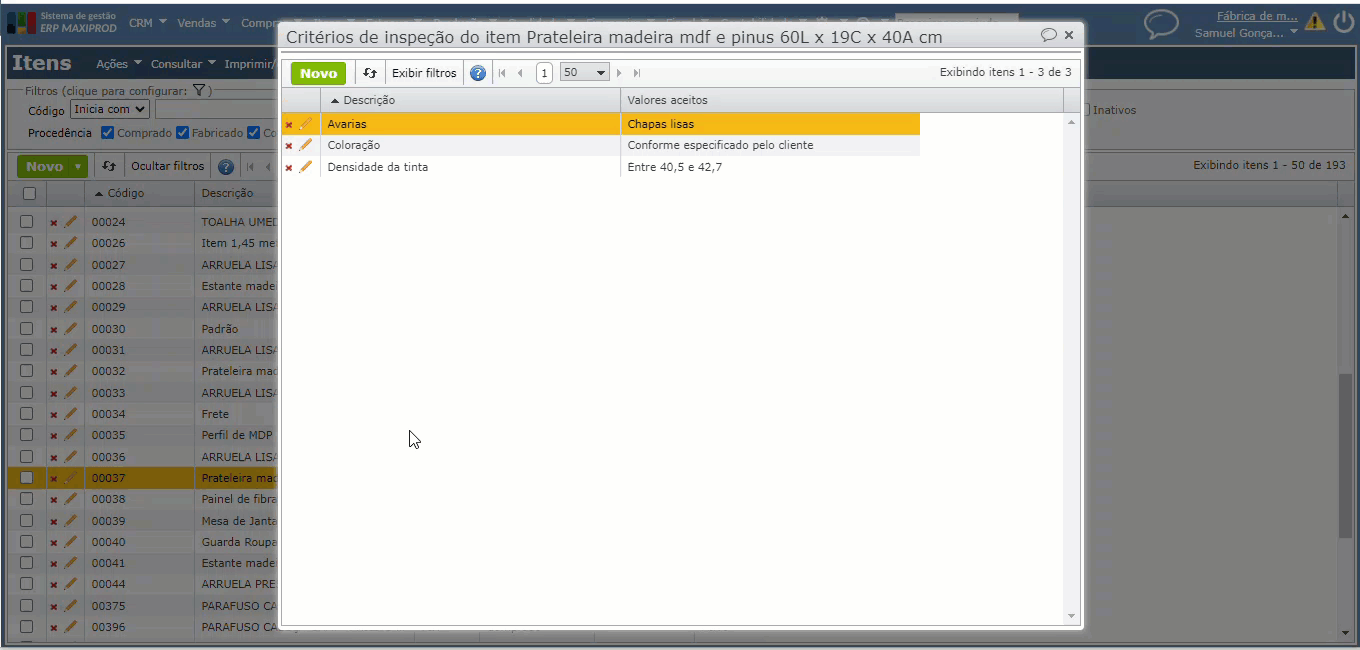 - Boletim de inspeção: como criar os critérios de inspeção de um grupo de itens?