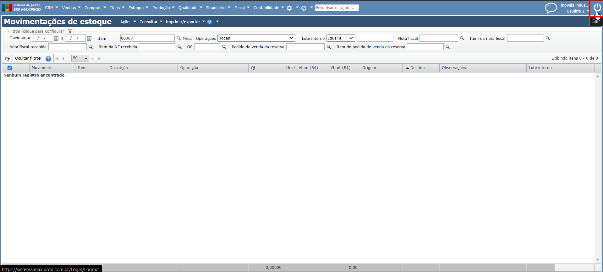 2) Se o problema persistir, é recomendado que o usuário que está realizando a consulta realize um logoff/login no sistema, através do botão “Sair“, localizado no canto superior direito da tela. Após o login, basta consultar o registro e validar se a alteração foi realizada.