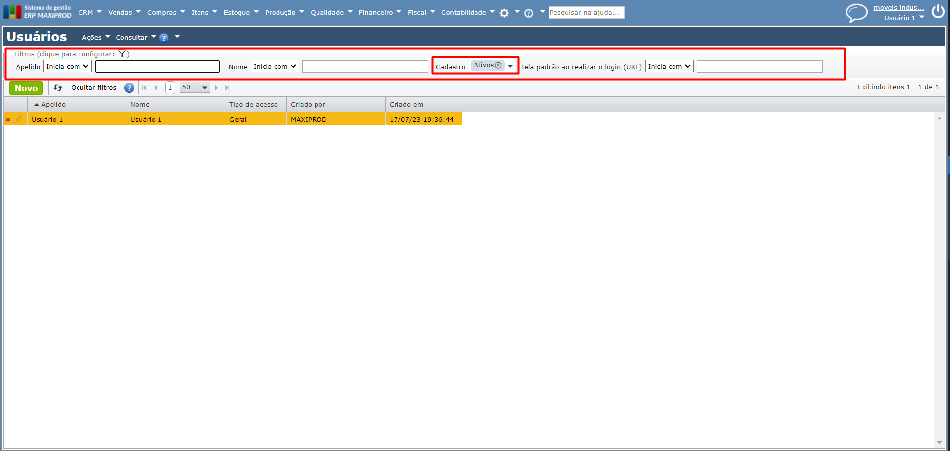 Para isto, é necessária a permissão “USU000 – Consultar usuários” no seu perfil de acesso.