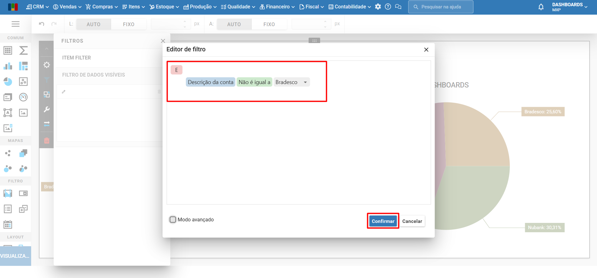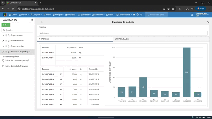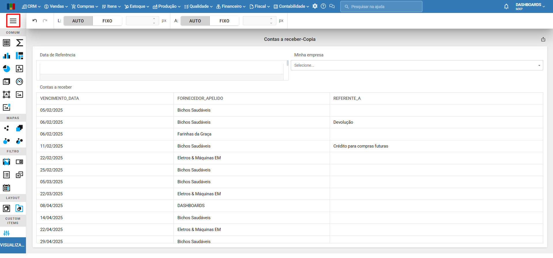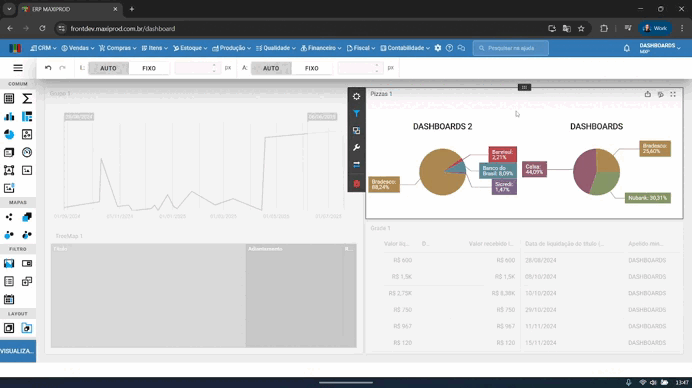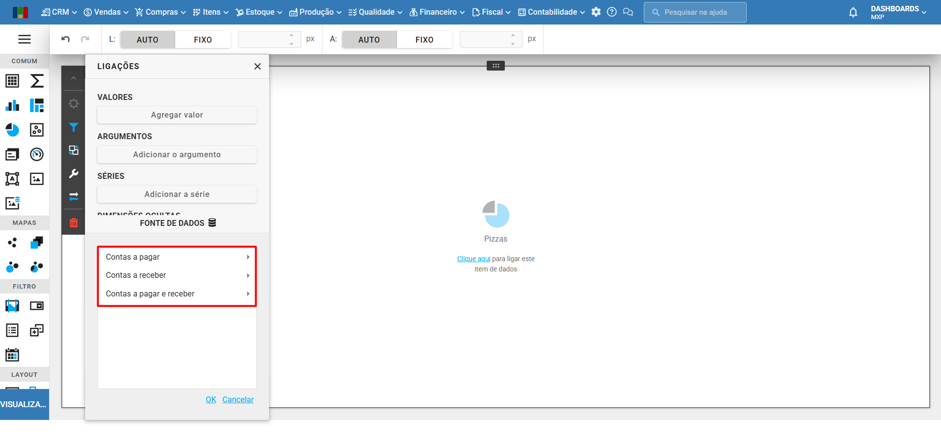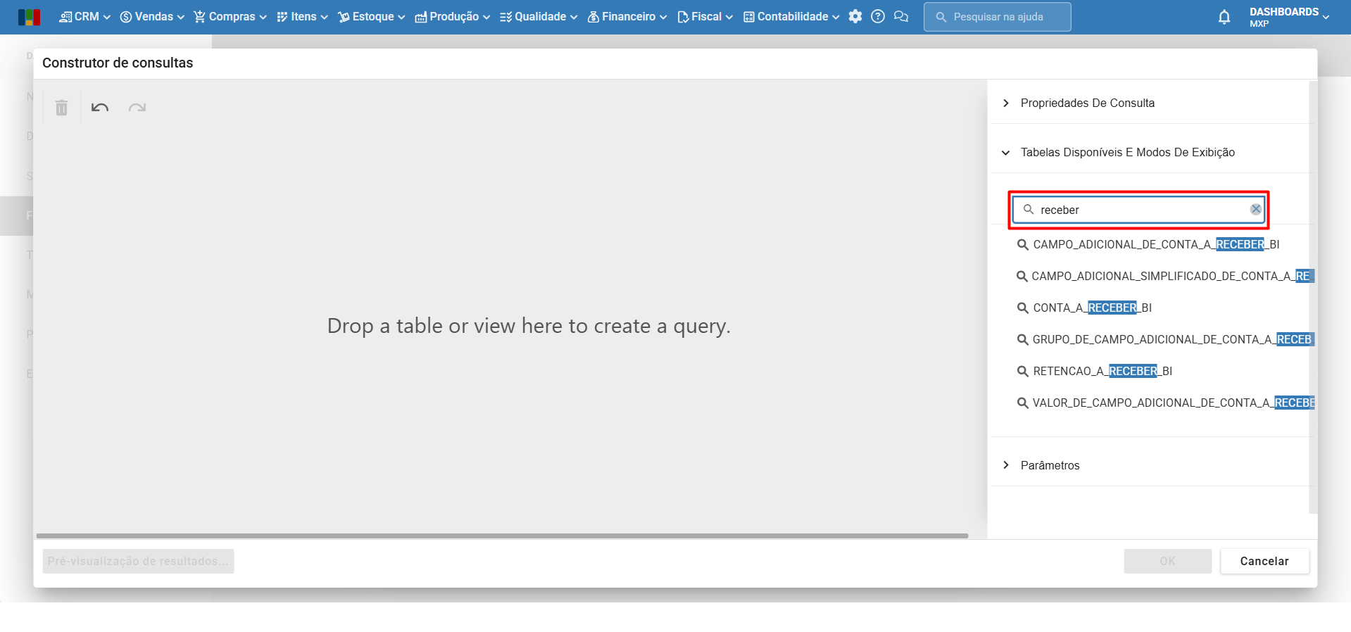 Por acessar diretamente todos os dados armazenados pelo ERP MAXIPROD, é necessário informar uma query (“consulta”). Assim, somente os dados necessários serão incluídos na configuração do dashboard.