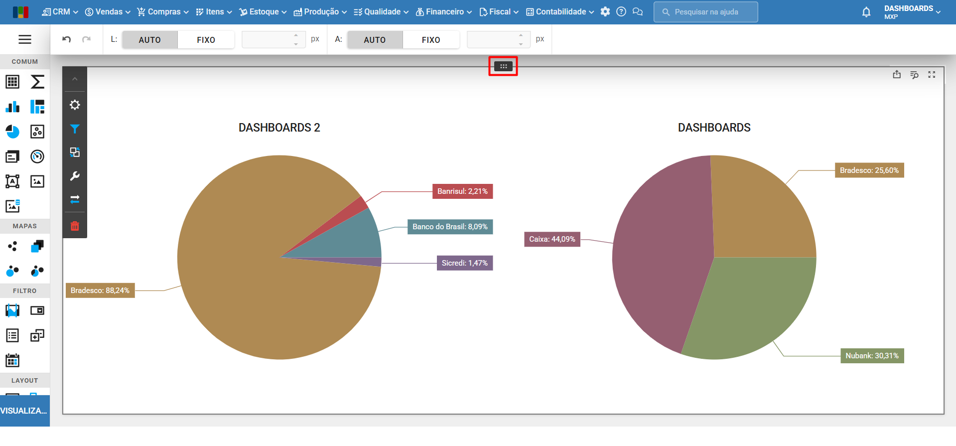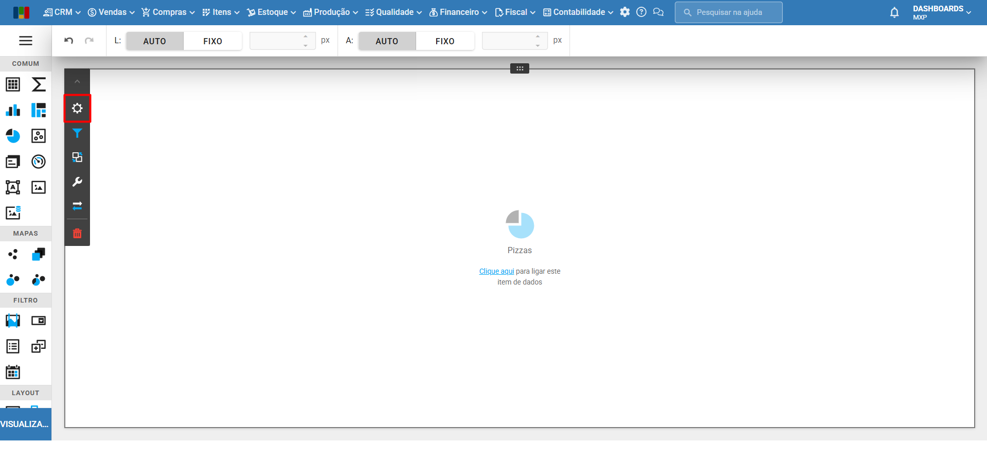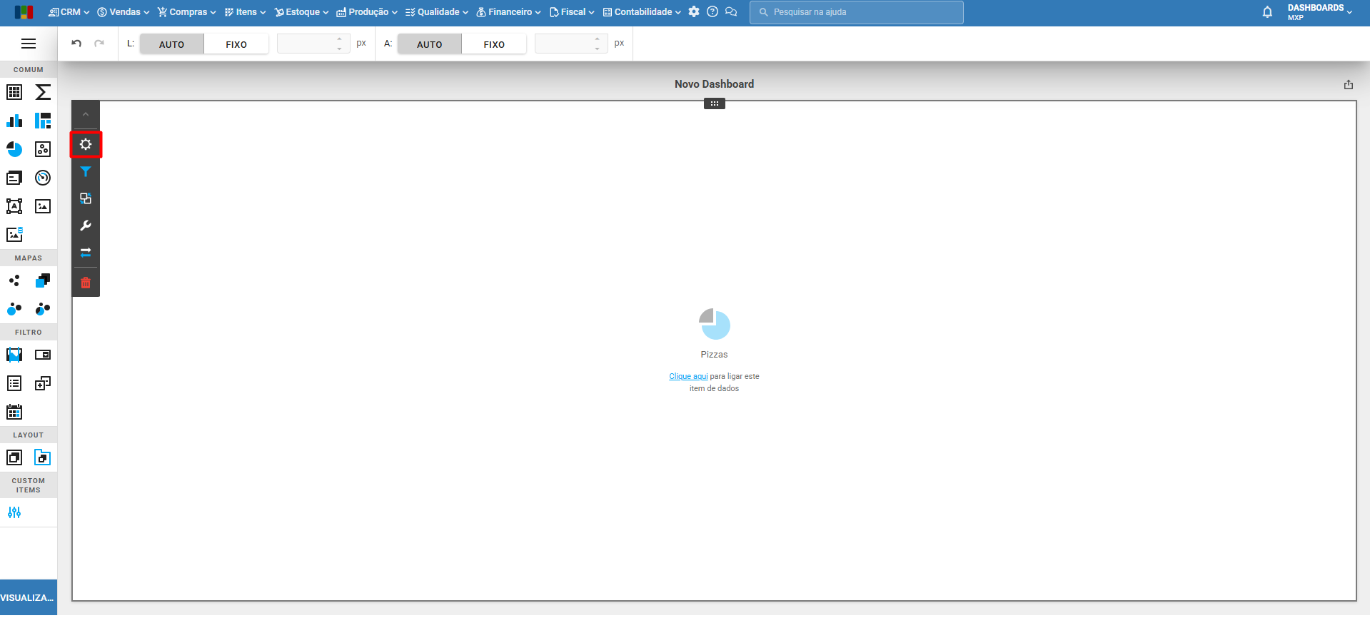 6) Caso deseje visualizar um dashboard sem a listagem lateral, clique no ícone de “configurações”.