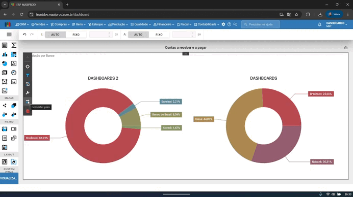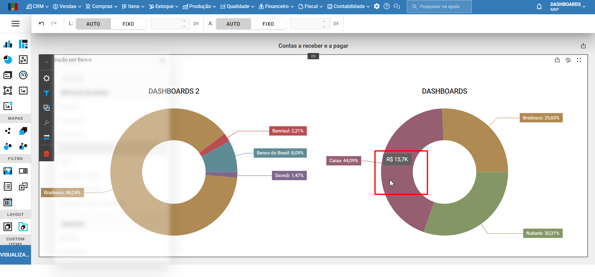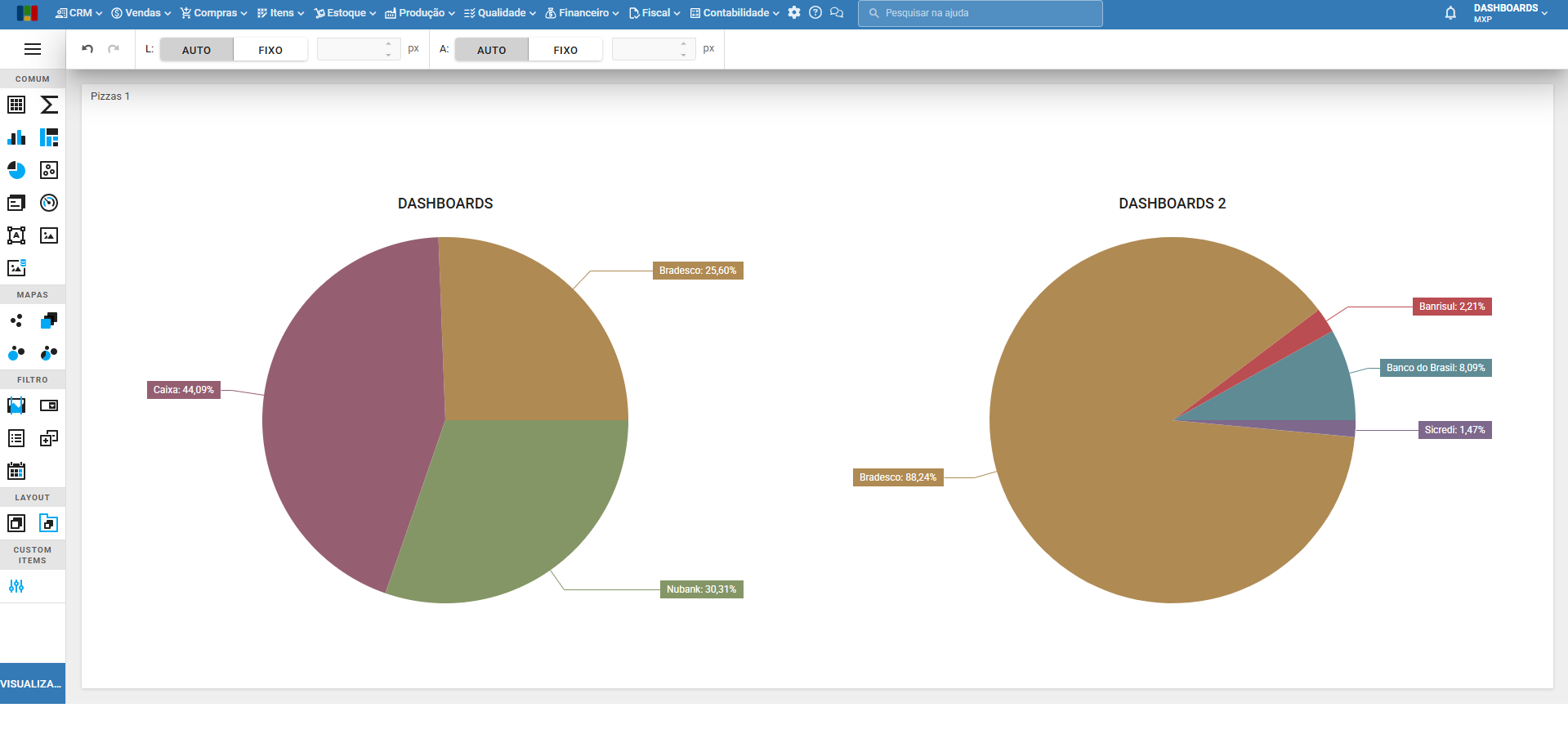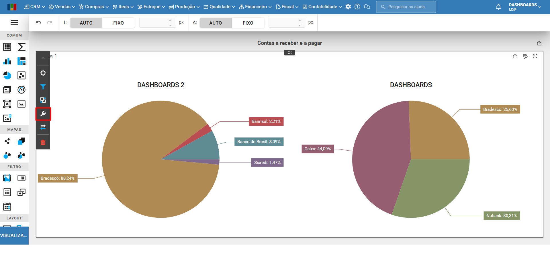 6) Caso deseje visualizar um dashboard sem a listagem lateral, clique no ícone de “configurações”.