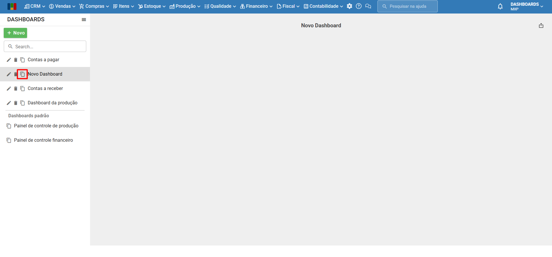 4) Para duplicar um dashboard a partir da tela inicial, clique no ícone de “duplicar”.