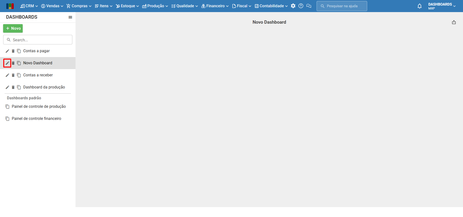 1) Clique no ícone de “lápis”, para editar o dashboard que deseja.