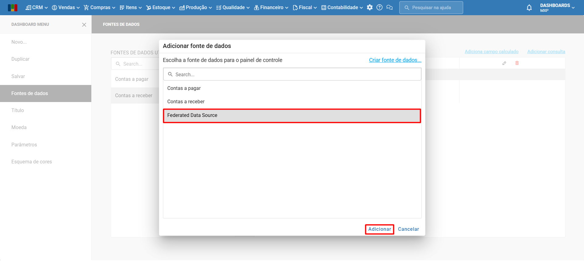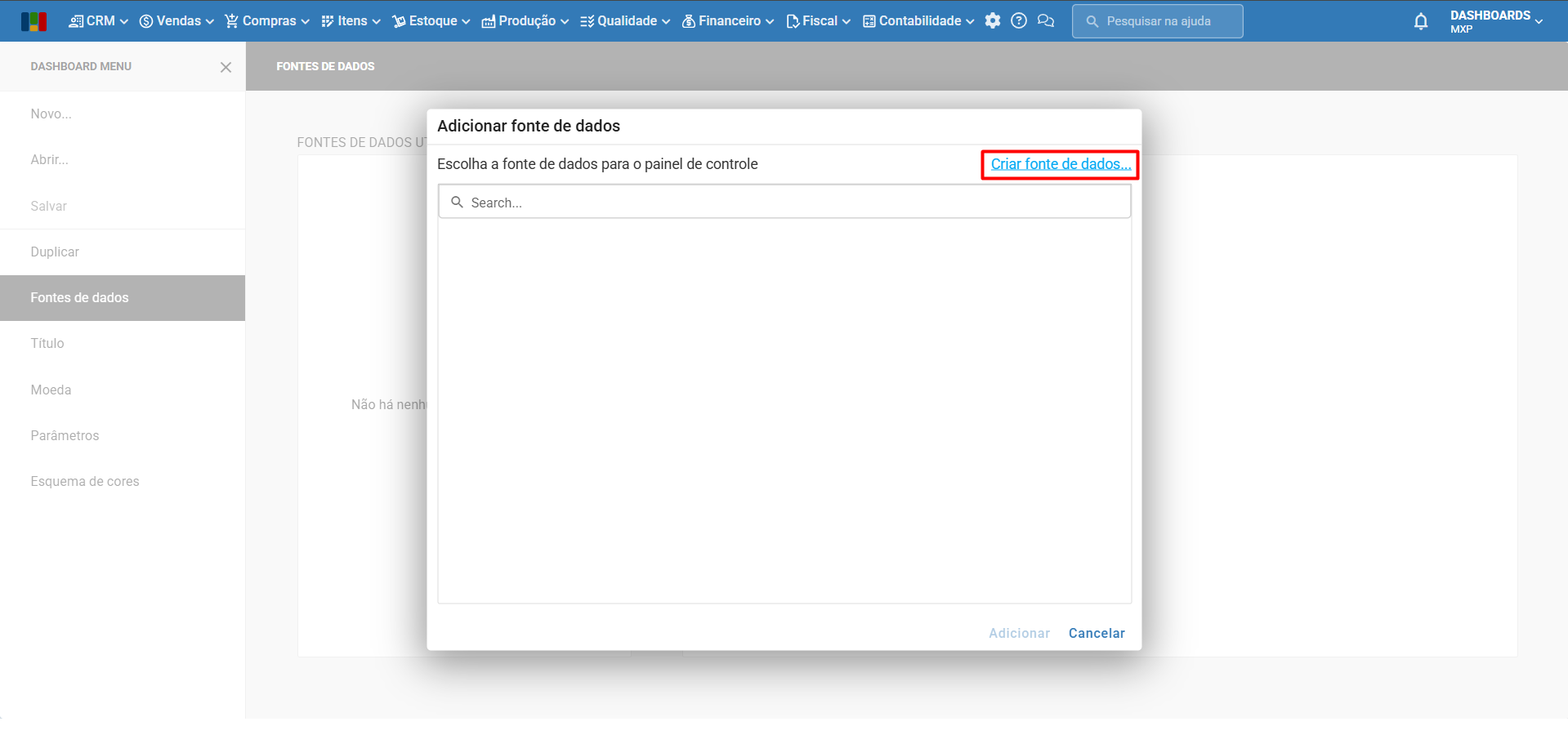 2) Clique em “Fonte de dados” e, logo em seguida, “Adicionar”.