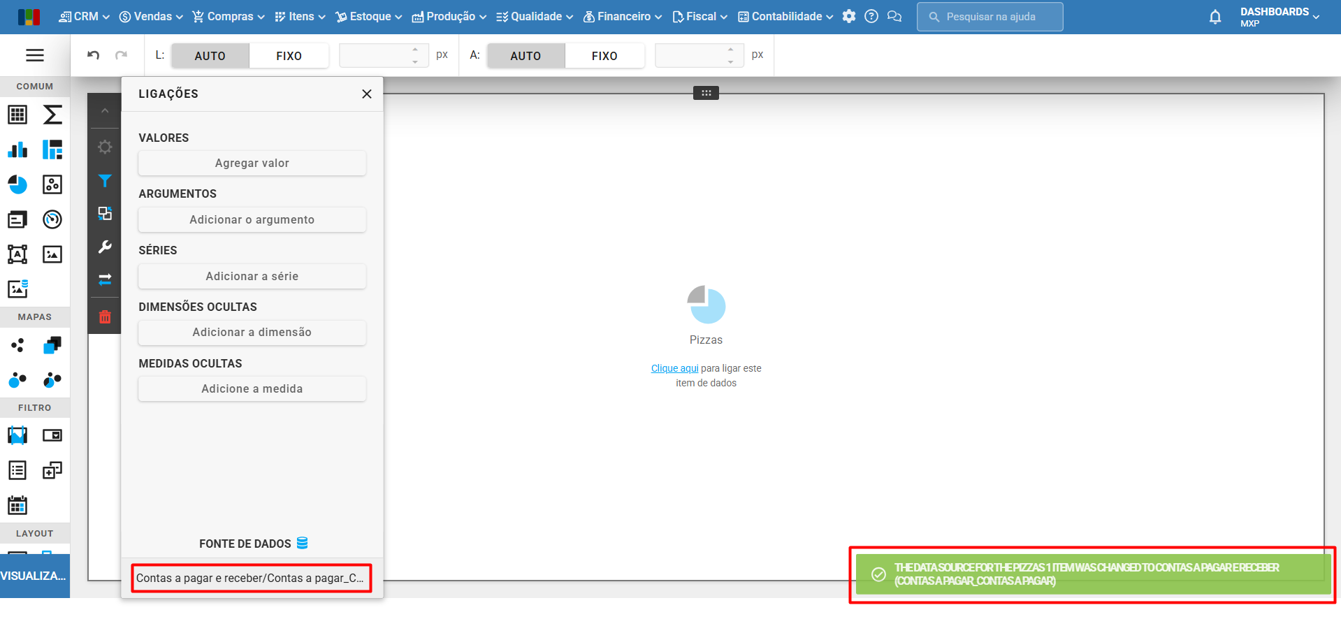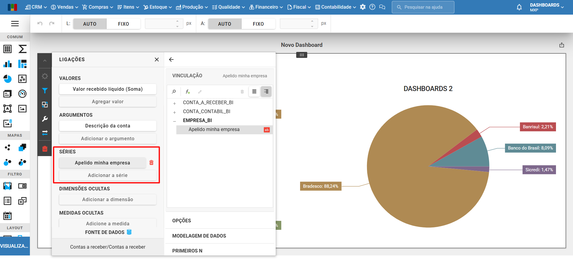 Com a finalização da conexão com uma fonte de dados, podemos começar a montar o layout do dashboard.