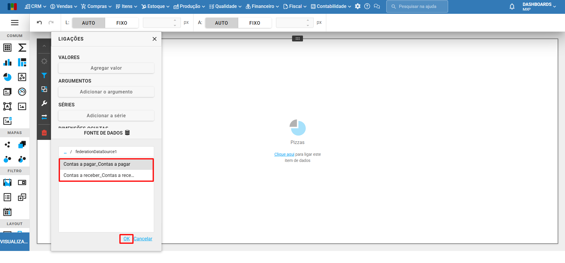 5) Por fim, selecione a consulta que deve alimentar aquele componente. Clique em “Ok” para finalizar.