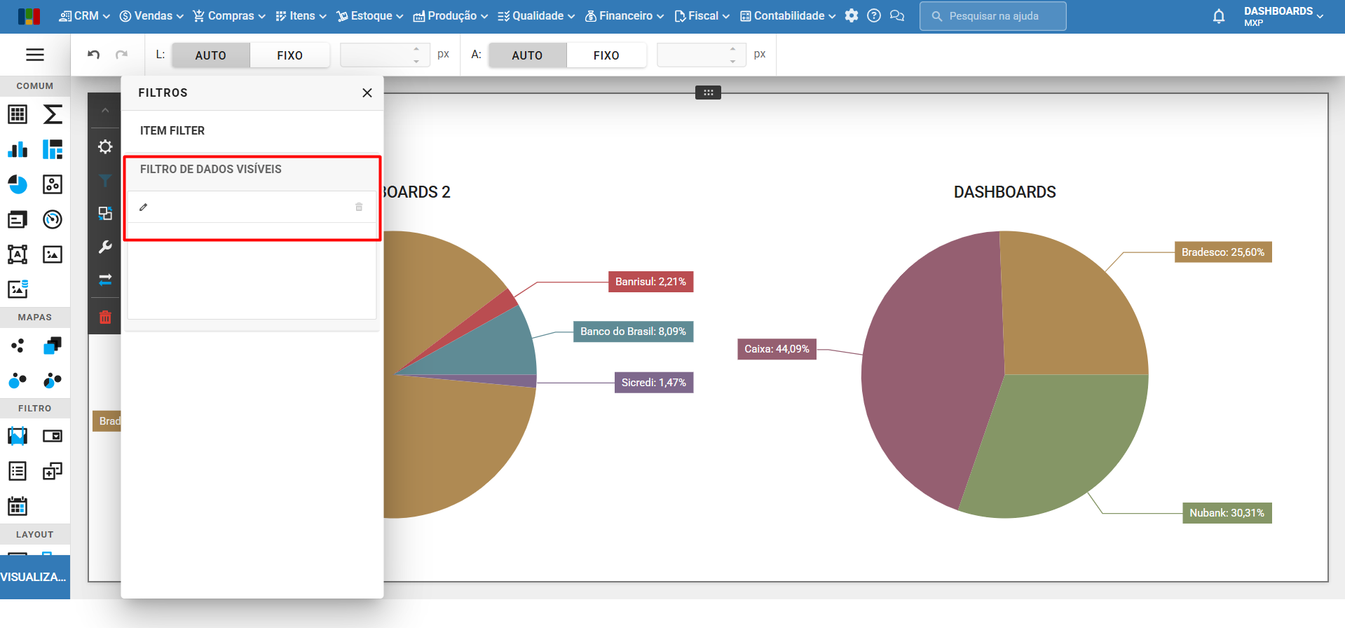 - Layout: permite agrupar componentes em um grupo ou guia comum. Quando um parâmetro ou filtro é incluído a um grupo, ele realizará a filtragem de somente aquele grupo. Para saber como colocar componentes dentro de grupos, clique aqui.