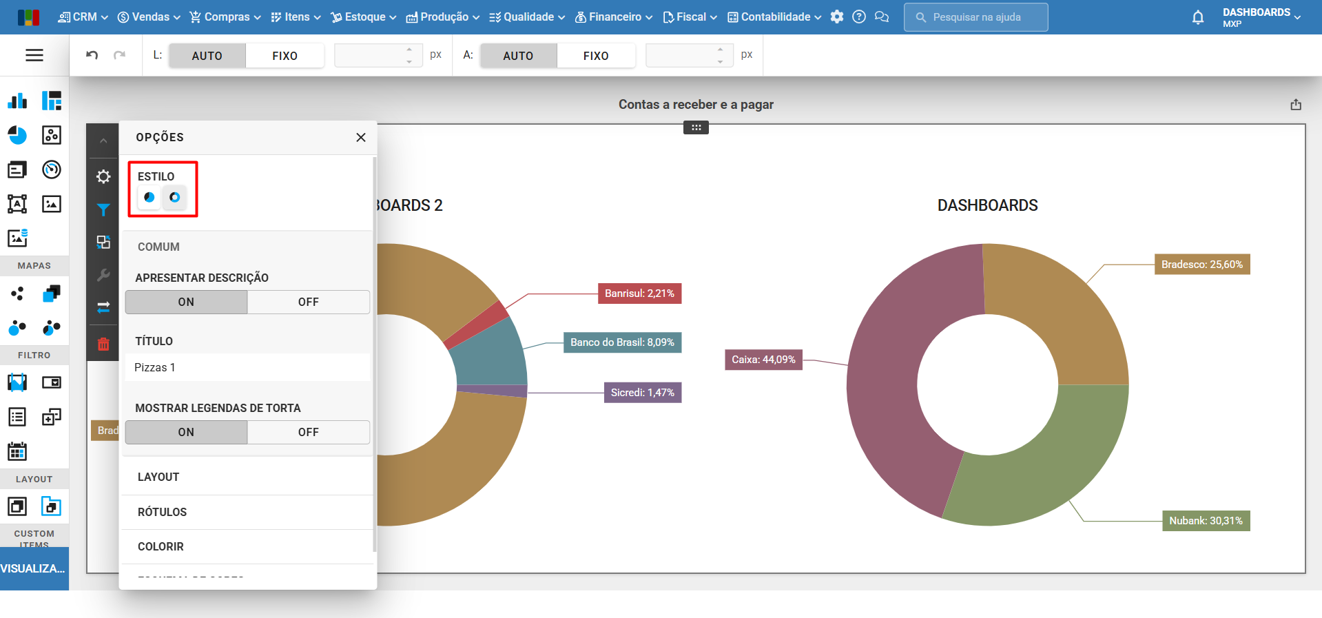 2) Informe o modelo que deseja que o gráfico se apresente, na aba “ESTILO”.