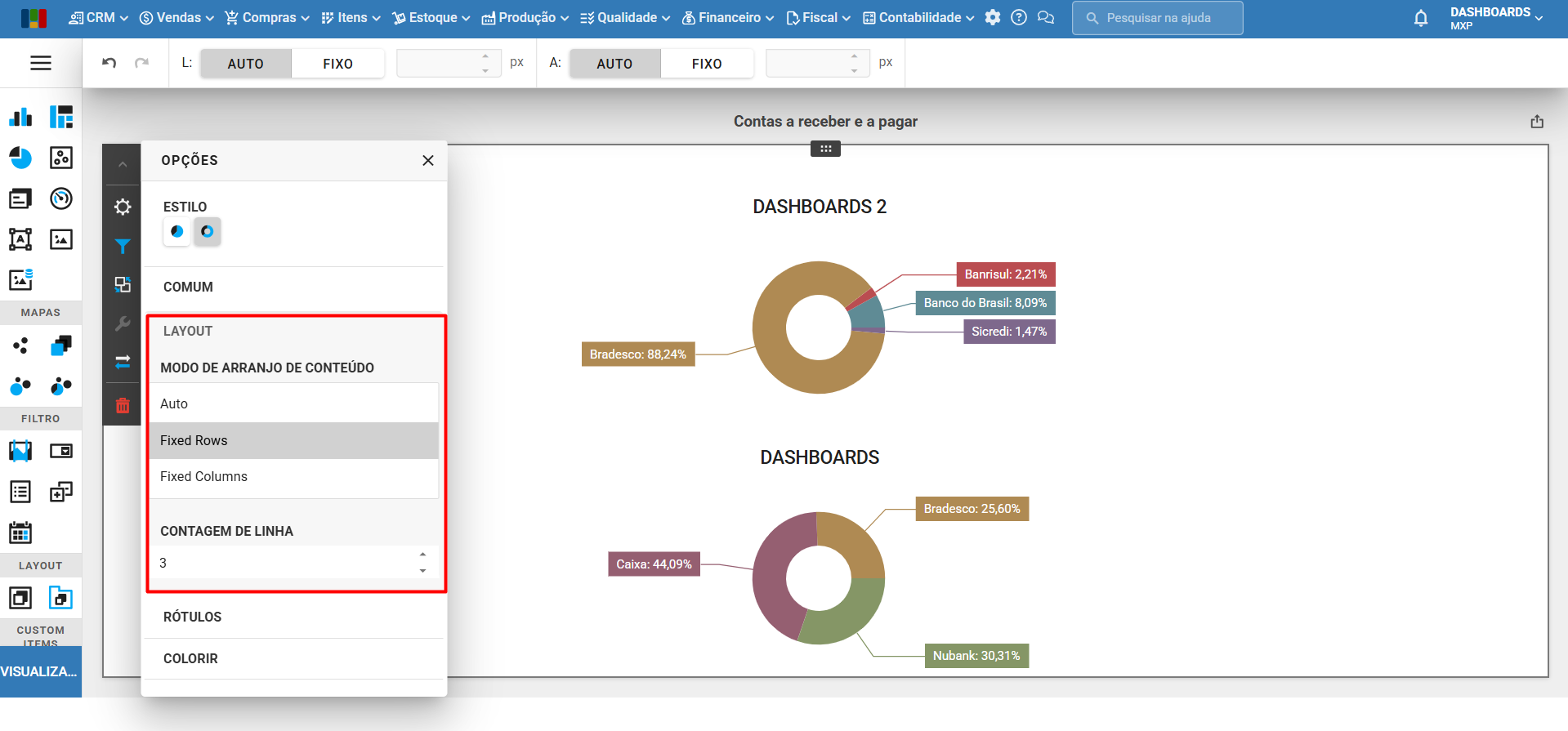 4) Em “LAYOUT”, defina como quer definir a disposição dos gráficos.