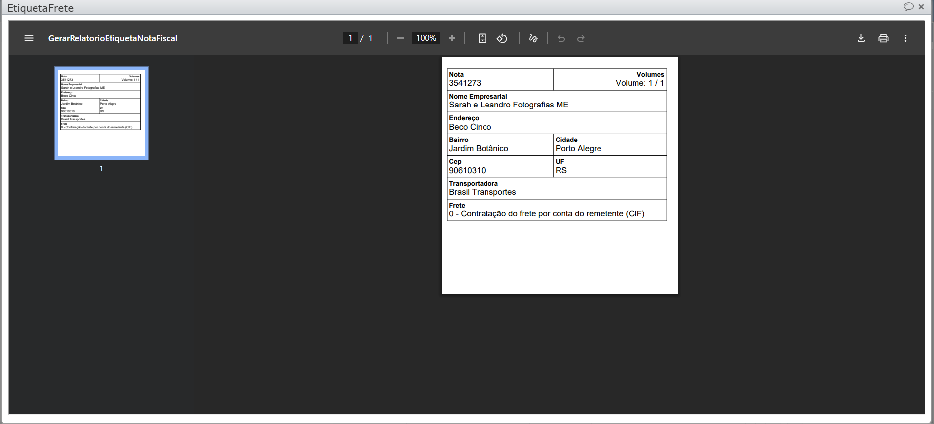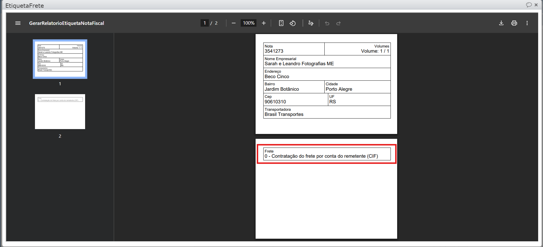 - Exemplo de etiqueta com inclusão da tag “[[NotaFiscal.CondicaoFrete]]”: