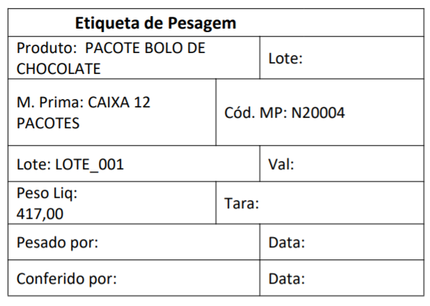 Etiqueta de pesagem