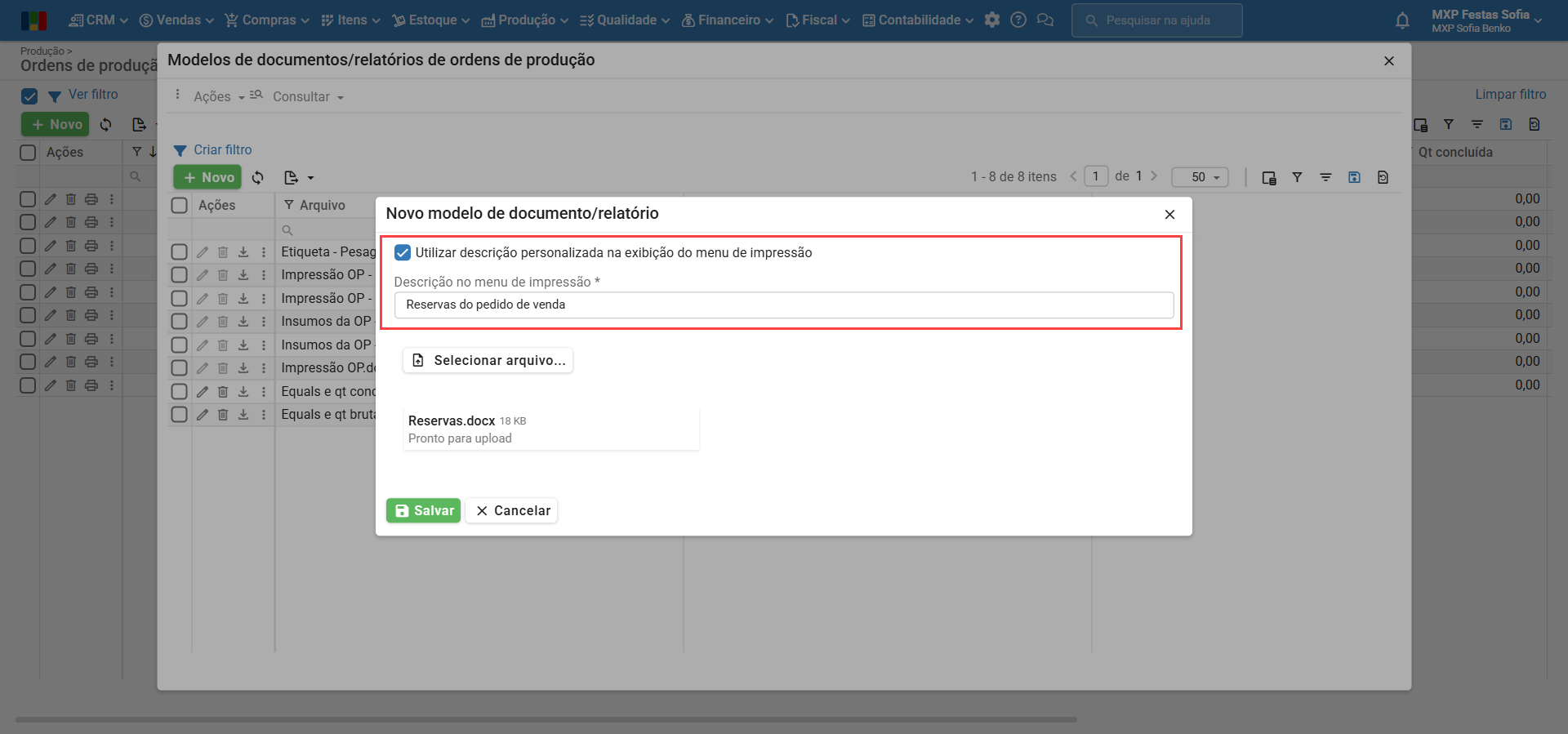 3) Após salvar, importe o novo modelo para o sistema. Para saber como, clique aqui.