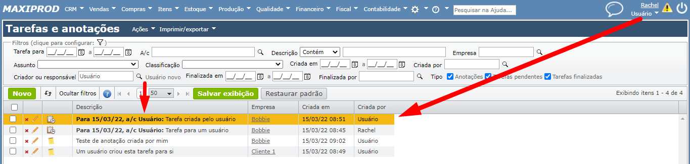 5) Desta forma, qualquer usuário com este perfil terá acesso à tela de tarefas e anotações, mas poderá consultar apenas suas próprias tarefas/anotações e aquelas pelas quais é responsável: