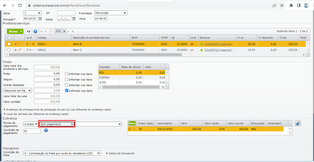 5) Emita a NF-e de devolução, gerando o título a pagar.