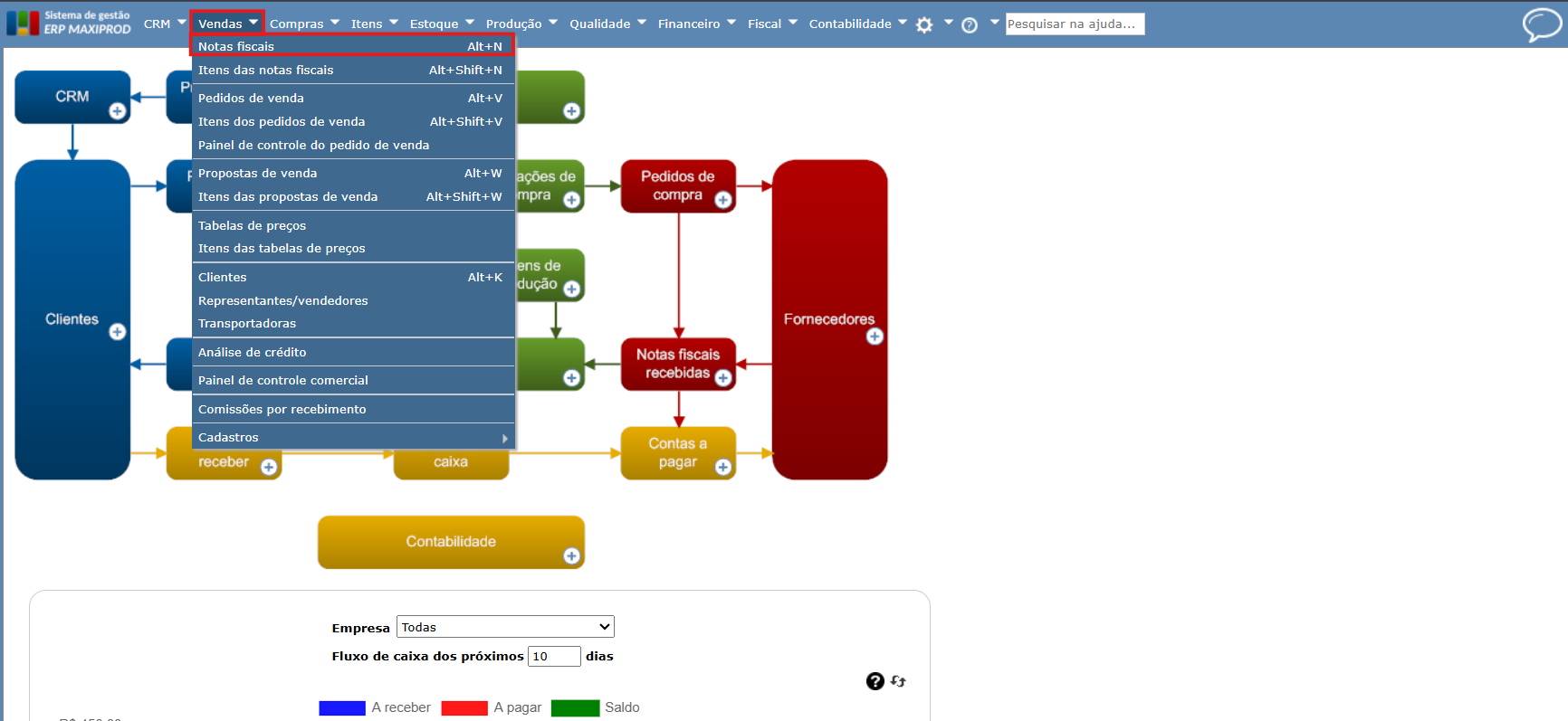 O ERP MAXIPROD permite a emissão de notas fiscais que reúnem itens de diferentes pedidos de venda, desde que todos estejam no estado “Aprovado” e tenham o mesmo destinatário. Há duas formas de se criar a nota fiscal com itens de diferentes pedidos: faturando os itens dos pedidos de venda pela tela “Itens dos pedidos de venda”, ou selecionando pedidos em uma nota em digitação.