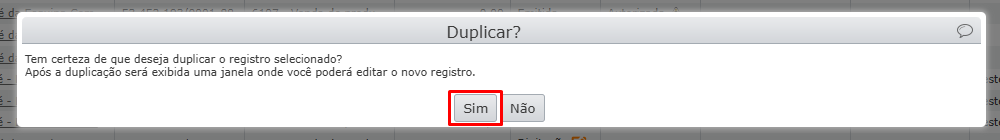 5) Caso tenha escolhido somente um registro, a cópia duplicada abrirá em tela.
