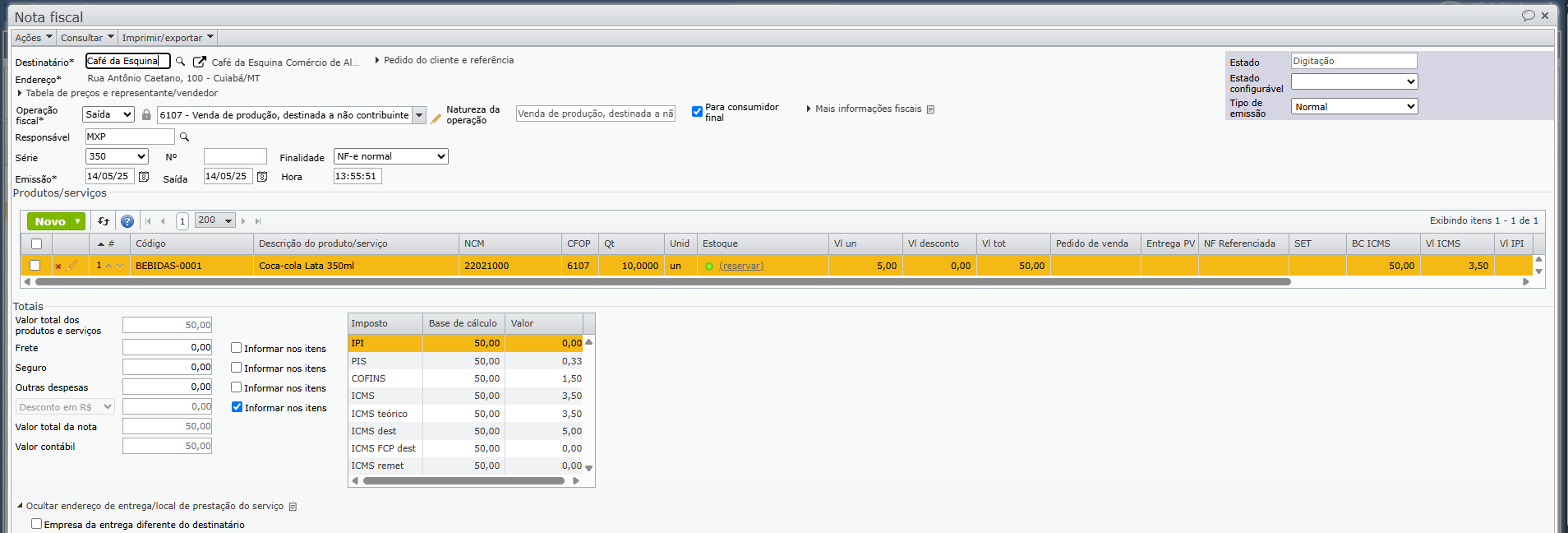 - Data e horário de entrada/saída: em notas fiscais, a data e hora de saída/entrada, são alterados para a data da duplicação.