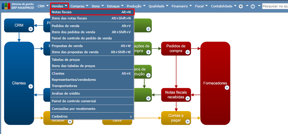 Em todos os casos, o caminho é semelhante, com no exemplo das NFs, mostrado a seguir: