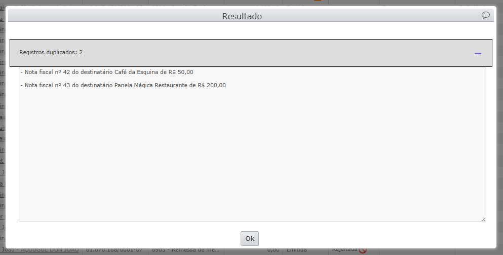 6) Caso tenha selecionado vários registros, o sistema exibirá o resultado da duplicação.
