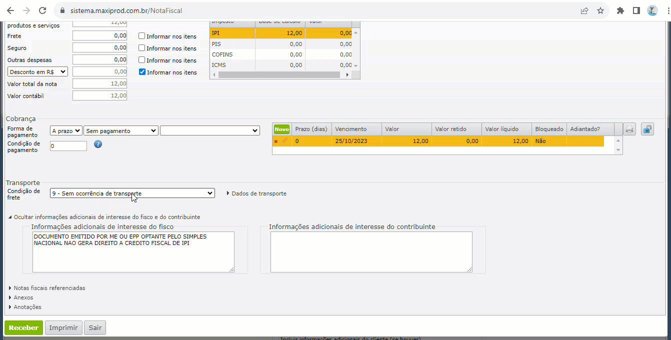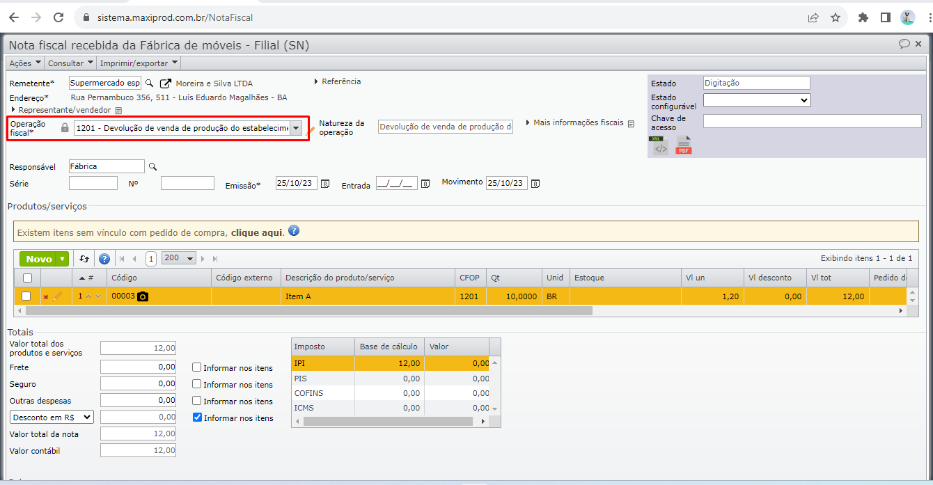Se a NF original, a devolver, não está no ERP MAXIPROD: