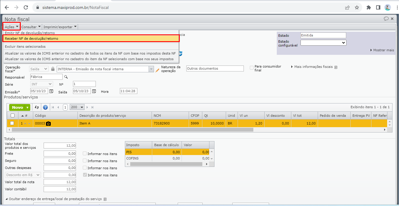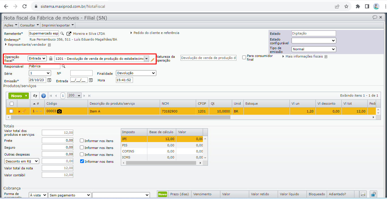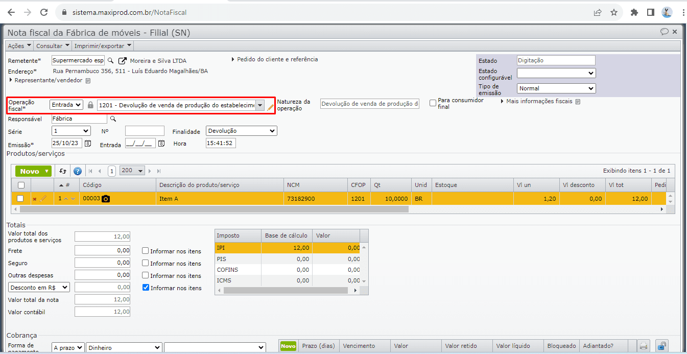 Se a NF original, a devolver, está no ERP MAXIPROD: