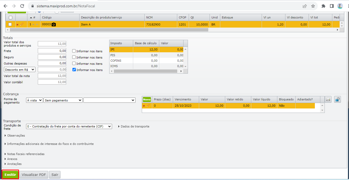 6) Agora a NF de devolução pode ser emitida e enviada para a Sefaz.