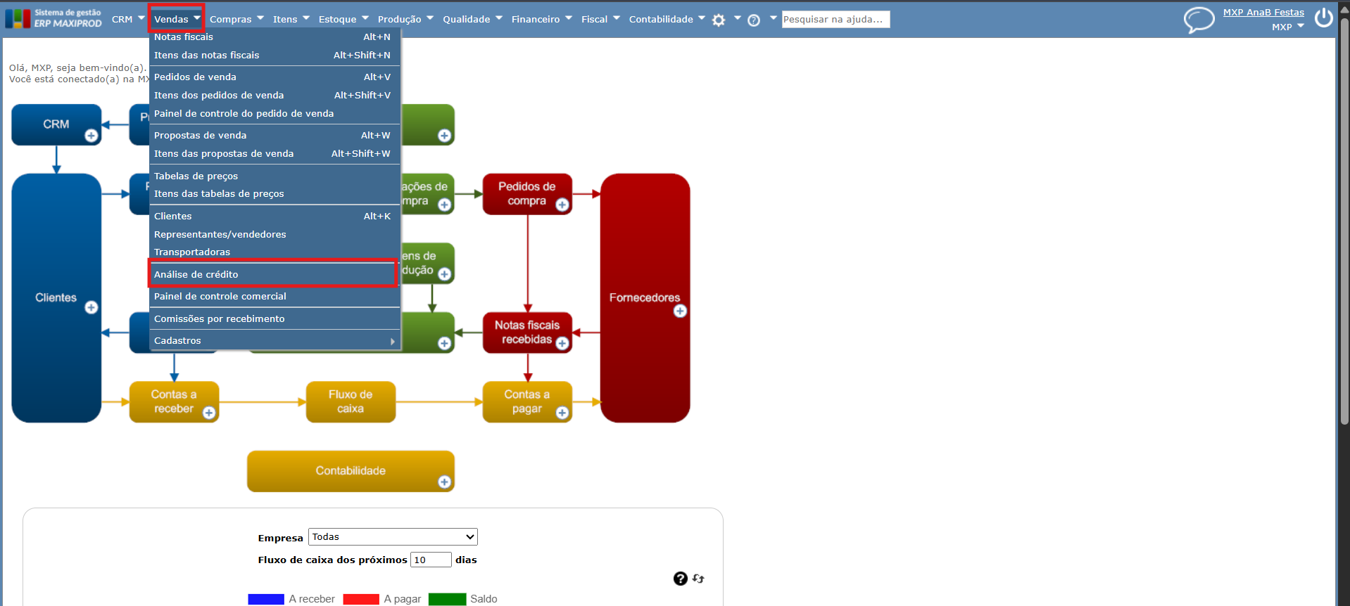 1) Entre na tela de análise de crédito, acessando o menu “Vendas > Análise de crédito”.