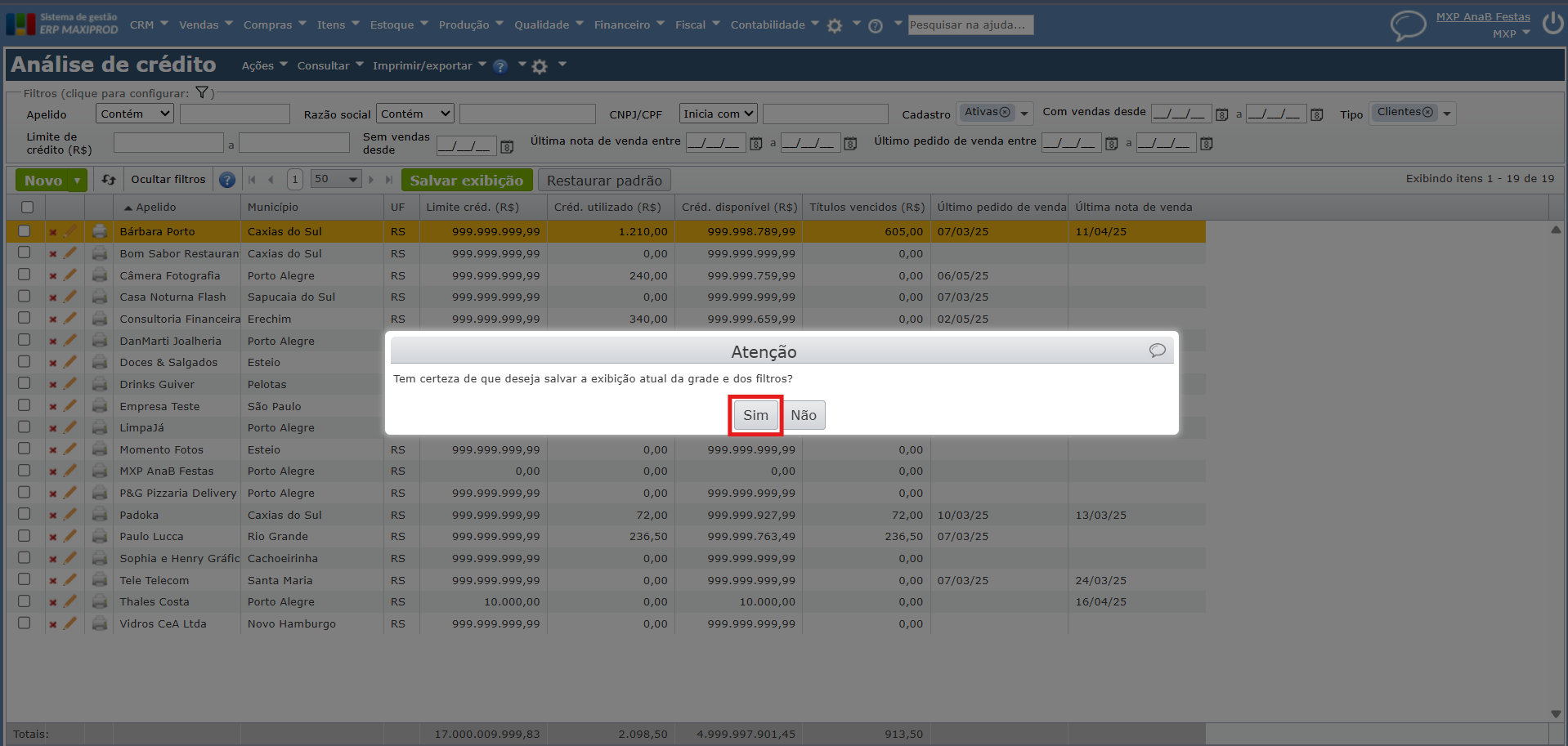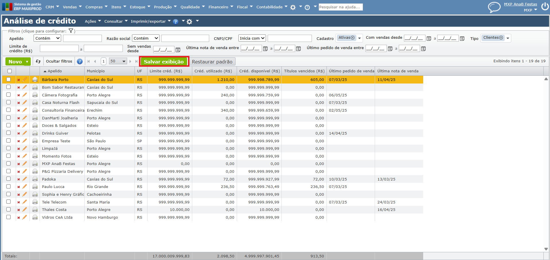 4) Se deseja manter estes filtros habilitados de maneira permanente na tela, clique no botão verde “Salvar exibição”. Para saber mais, clique aqui.