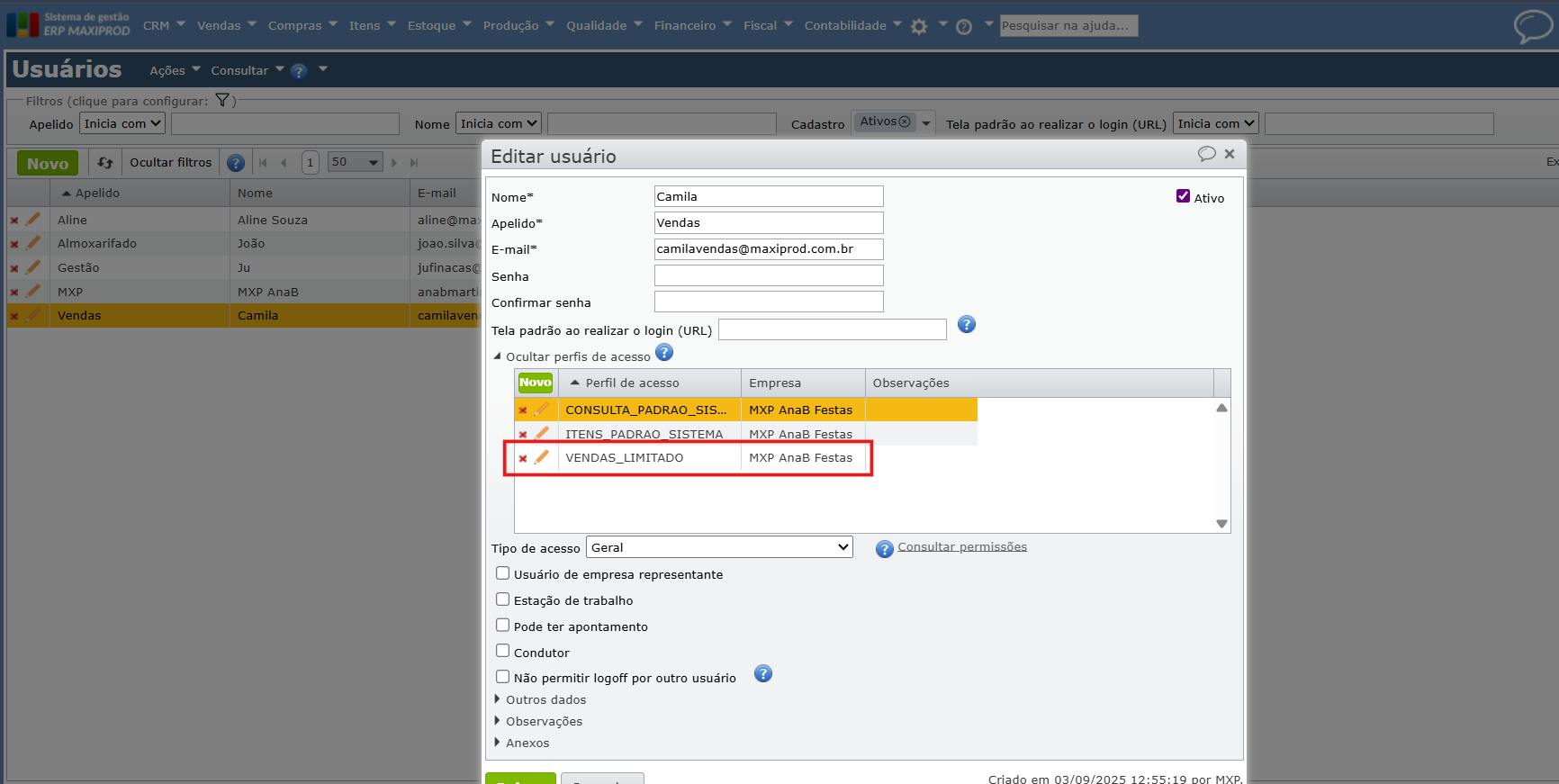 O ERP MAXIPROD permite configurar o processo da aprovação de pedidos de venda, restringindo a permissão de aprovação final a usuários específicos. Aumenta-se assim a segurança da aprovação de pedidos: os vendedores enviam os pedidos para análise e somente usuários autorizados podem aprová-los, eliminando alterações indevidas após a aprovação e assegurando a integridade do processo comercial.