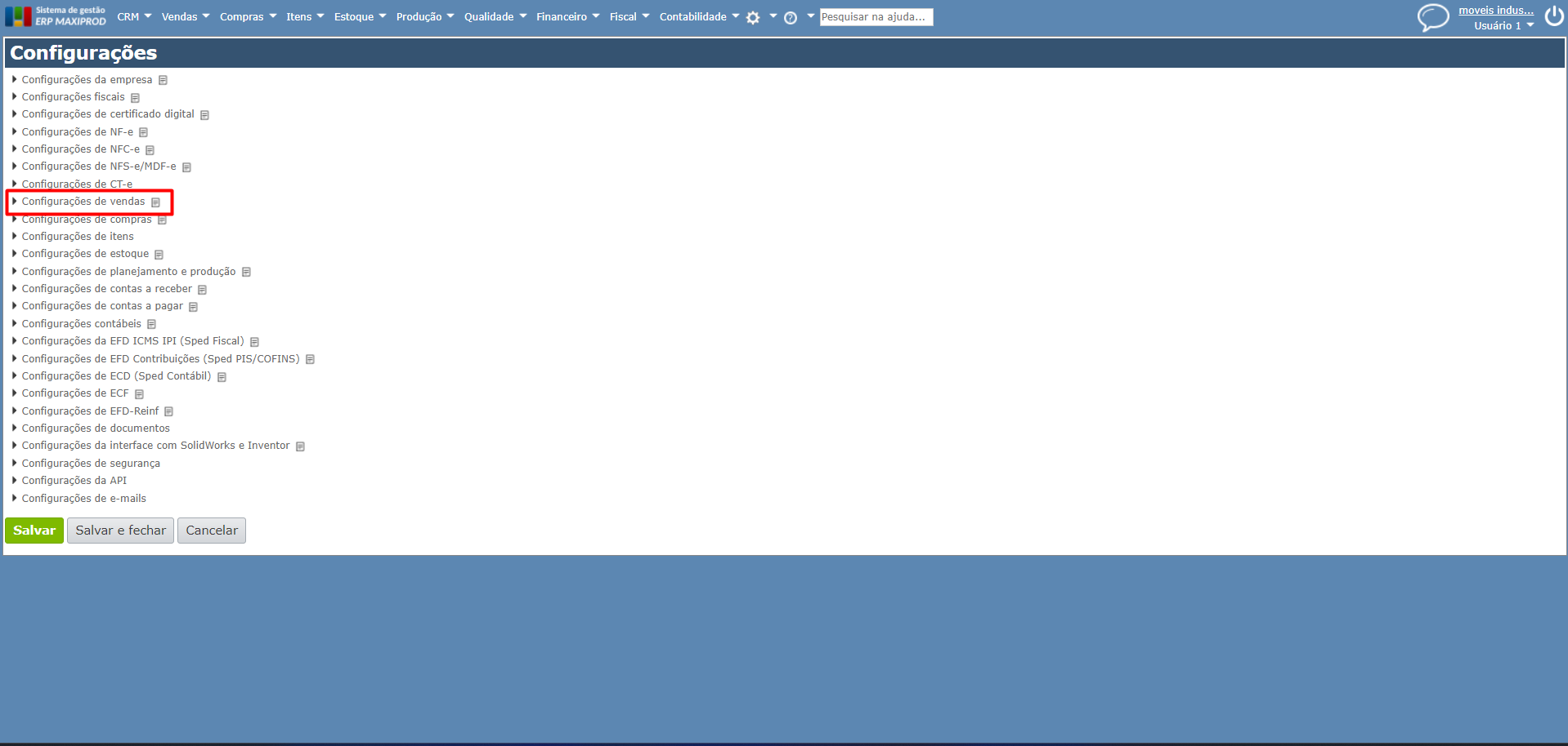 Para exportar o estoque do MAXIPROD para o e-commerce, é necessário que a configuração “Sincronizar estoque com e-commerce/Mercos” esteja marcada nas configurações de vendas. Para isso, siga o passo a passo abaixo.