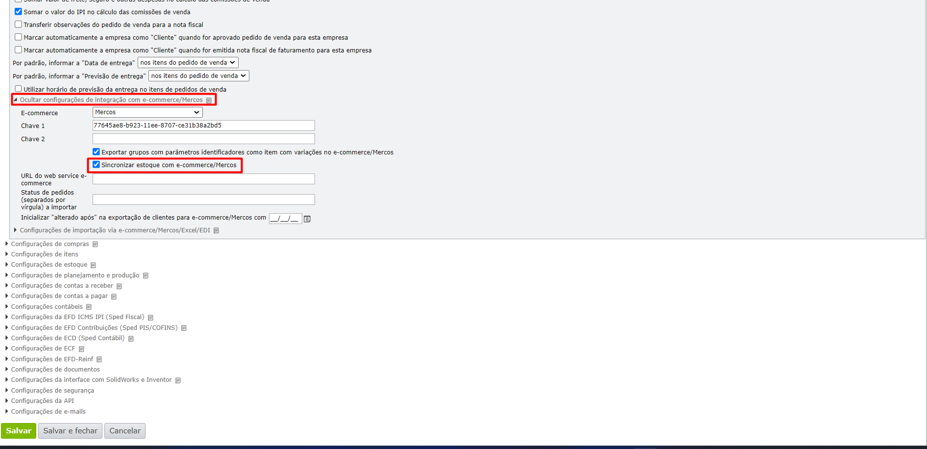 Como integrar o estoque do sistema com e-commerce/Mercos?