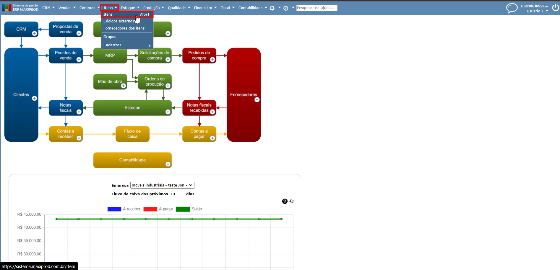 1) Para fazer o reajuste, acesse o menu “Itens > Itens”.