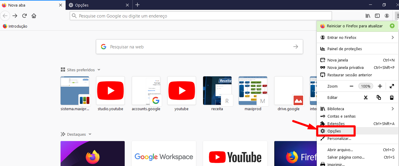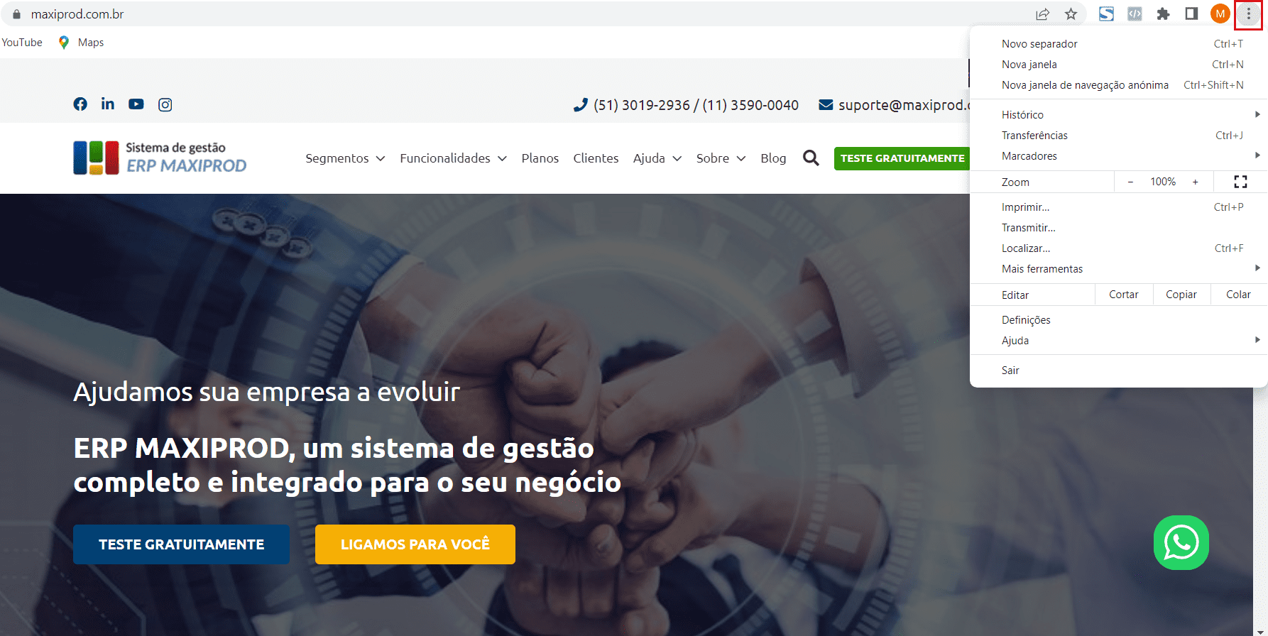 1) Clique no botão de configuração (3 pontos no canto superior direito) na barra de ferramentas do navegador.