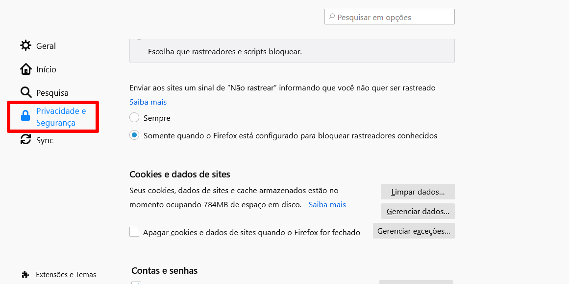 3) Clique em “Privacidade e segurança”.