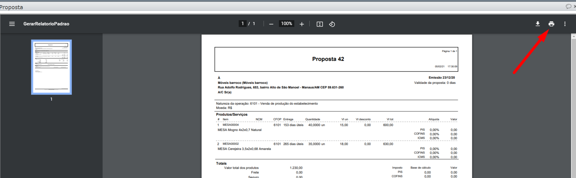 1) Para salvar o PDF no computador, normalmente clicamos no ícone da “flechinha para baixo” para fazer o download. Mas, neste caso, clique no ícone da impressora.